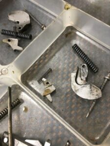 While I keep the workshop fairly well stocked there are huge varieties of parts even between similar models and it just isn’t possible to keep every part on the shelf some are hard to find and others are long out of production, parts that fail are usually known or prone to failing in the same or similar ways, whilst we have pretty good support from most major manufacturers prior to the game season its not uncommon to find needful things going out of stock as gunsmiths up and down the country rush to prepare neglected guns for another season – so if you leave things too late you can end up with a job stalled waiting for parts on back order or for me to find time to manufacture from scratch.