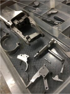 - A fully lubricated and reassembled action! At this point function is tested and sear engagement verified for safety.